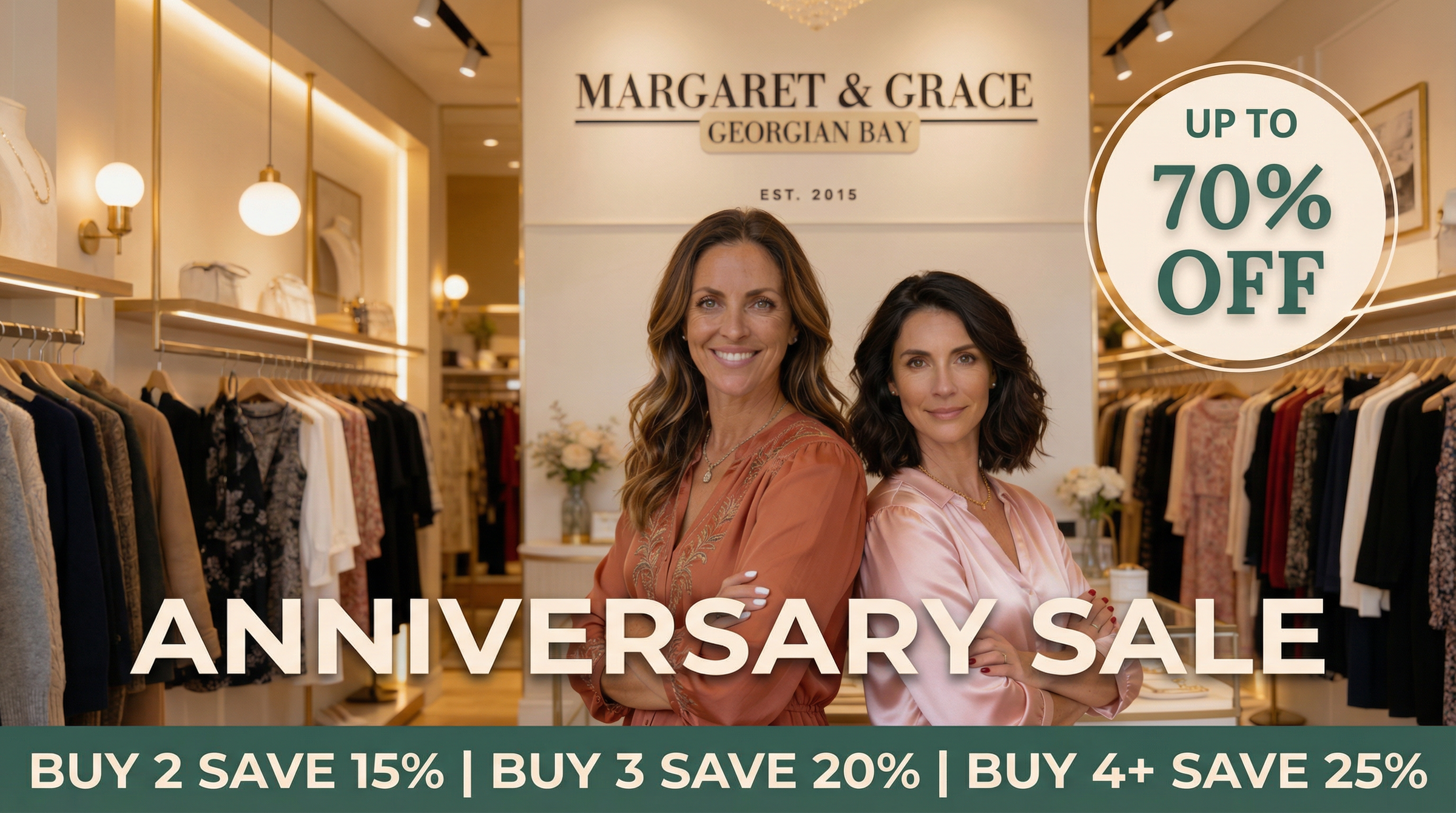 Celebrating 10 years of M&G Georgian Bay and we want to thank YOU. Explore our collections and discover pieces up to 70% off as we celebrate this incredible milestone together. This Anniversary Sale is our way of saying: thank you for being part of our story.